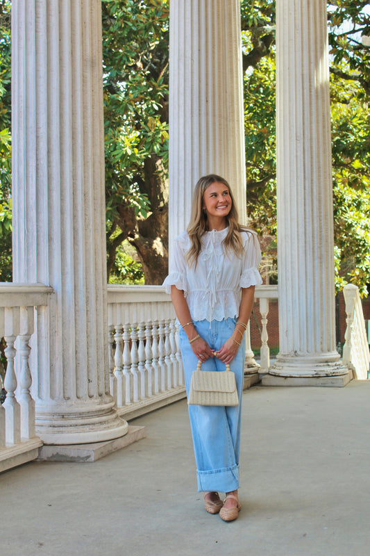 Sold outTaupe Ruffle Long Sleeve Blouse