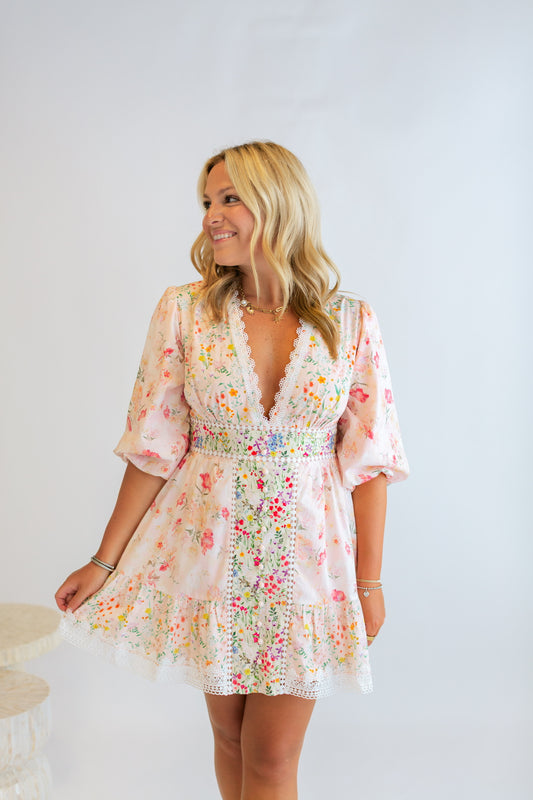 Floral Print Short Sleeve Mini Dress
