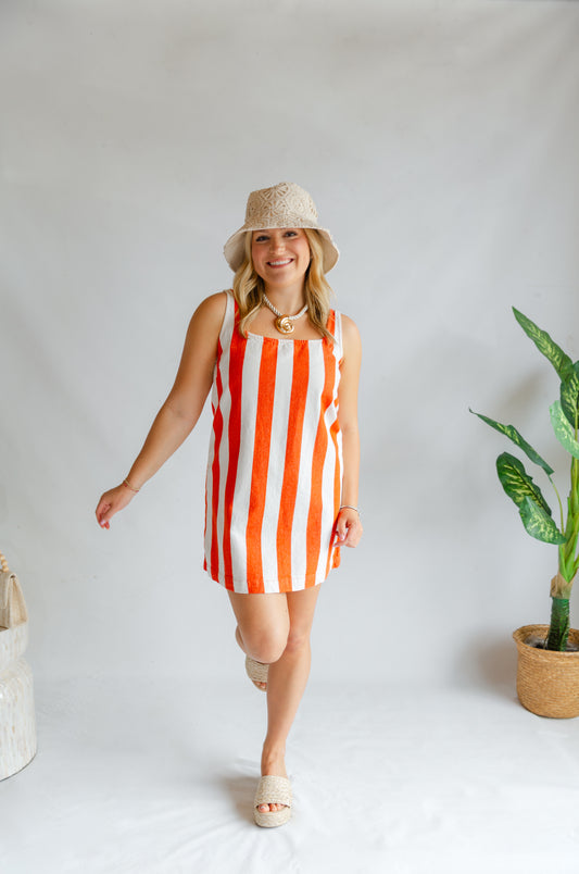 Orange Striped Mini Dress