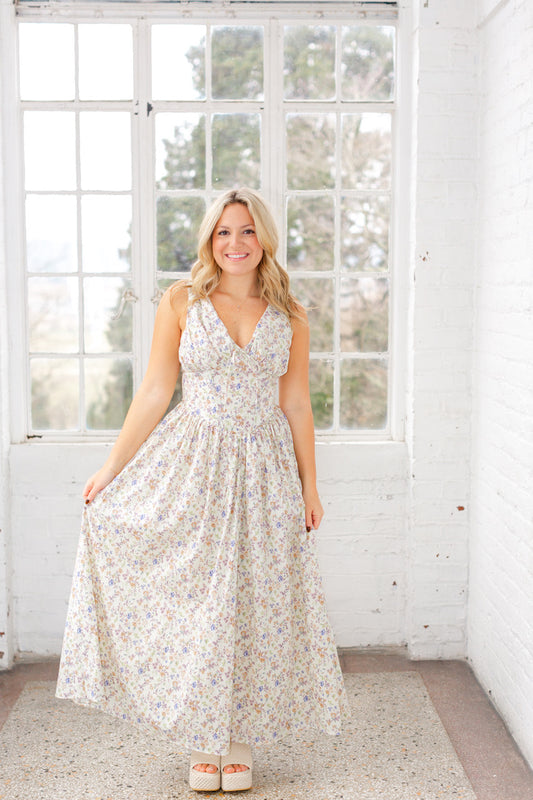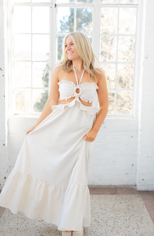 Ivory Cut Out Ruffled Maxi Halter Dress