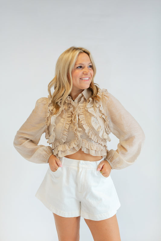 Sold outTaupe Ruffle Long Sleeve Blouse